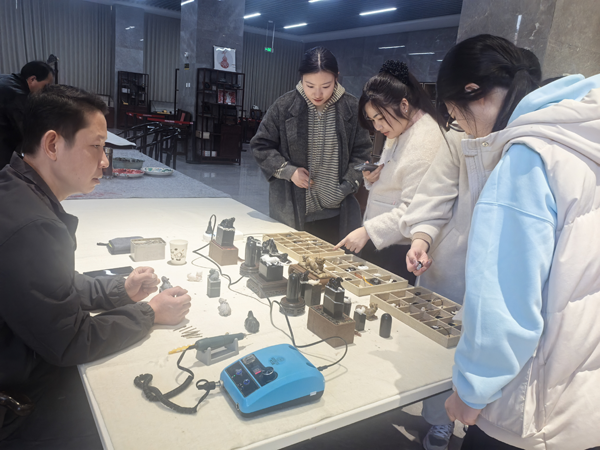 随后,在灵璧县博物馆,大家通过参观珍贵文物与历史资料,系统了解灵璧的发展脉络与灿烂文化。从古老石器陶器到钟馗画、奇石文化、剪纸文化等,再到近代革命历史纪实,一段段历史、一件件实物引发深刻的文化共鸣。大家认真聆听讲解,交流感想,对灵璧地域文化、红色基因与非物质文化遗产有了更直观的认知,增强了文化自信与家乡认同。