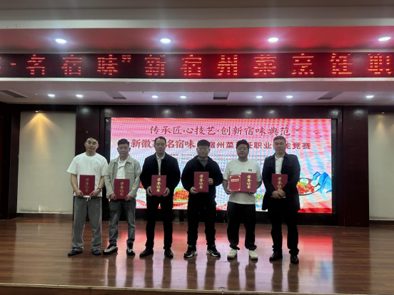 经过专业评审综合评定,灵璧1名选手凭借稳定发挥与突出表现荣获二等奖,并被授予“新宿州菜”称号;5名选手凭借扎实功底与优秀作品斩获优秀奖,灵璧代表队以优异成绩为全县餐饮行业争得了荣誉。
