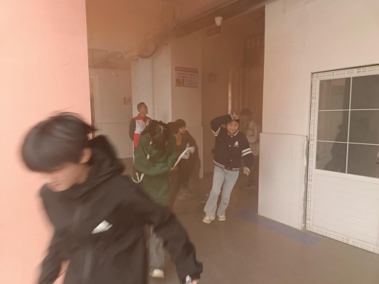 随着急促的防震警报声响起,演练正式启动。现场释放模拟烟雾,还原真实灾害场景,各班学生在任课老师的快速引导下,立刻双手抱头、弯腰低姿,就近躲至课桌下方做好紧急避险;疏散指令下达后,全体师生捂住口鼻,紧贴墙壁、沿着预定疏散路线快速有序撤离,全程动作规范、协作配合,顺利抵达操场安全集结区域。各班班主任第一时间清点人数并逐级上报,应急救护组随即逐层逐班排查,将受伤人员,转移到安全区域施救包扎与固定,整个演练环节紧张有序、衔接顺畅。