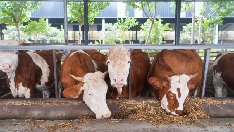 灵璧县禅堂镇众帮养殖专业合作社内,养殖的黄牛正在进食。(资料图 灵璧县委宣传部供图)