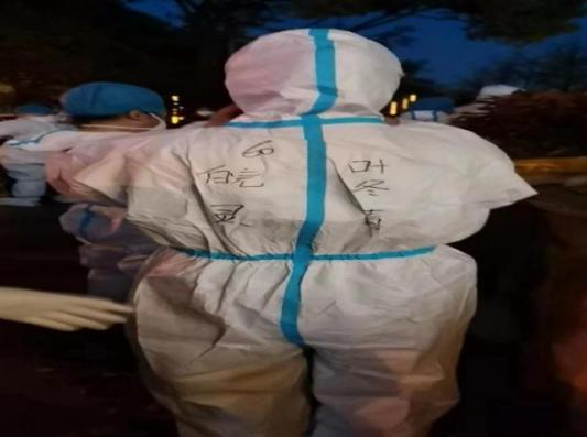 4月25日,叶冬青同志第三次加入灵璧支援医疗服务队投身上海杨浦疫区;更加不畏危险、心无旁骛,坚持撑在抗击疫情一线。(灵璧县黄湾镇朱守桐)