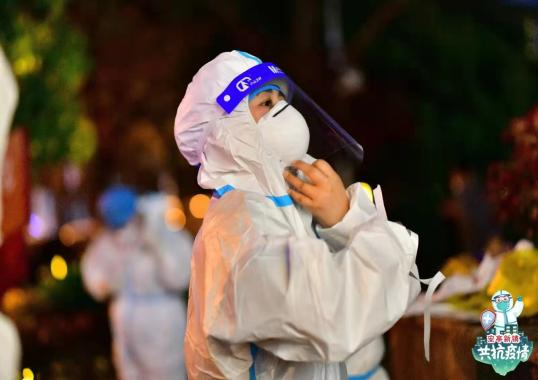 2022年4月3日,她整装待发第一次奔赴上海宝山区配合当地疫情防控工作人员,积极加入核酸采样队伍中去,连续工作十余个小时,不喊苦、不叫累。