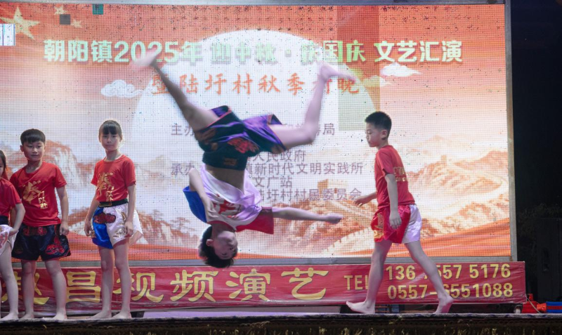 最终,汇演在全体演员合唱的《歌唱祖国》中落下帷幕。熟悉的旋律响起时,台下观众自发起身跟唱,嘹亮的歌声回荡在现场,将家国同庆的氛围推向顶点。此次文艺汇演不仅是朝阳镇丰富群众精神文化生活的生动实践,更是陆圩村“秋季村晚”扎根乡土、服务百姓的具体体现——从少儿到老人,从专业表演者到普通村民,每个人都是这场文化盛宴的参与者、受益者,既展现了朝阳镇群众积极向上的精神风貌,也以文化为纽带,凝聚起共建美好家园的磅礴力量。(任小维 赵振宝)