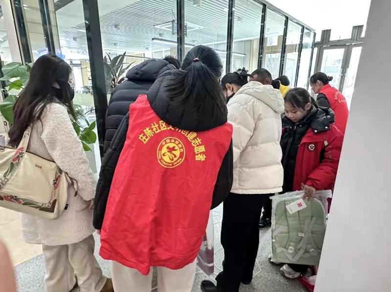 志愿行动暖心田。前期经过两周的入户摸排,志愿者们精准锁定“一老一小”作为本次重点服务对象。在庄陈社区活动中心,志愿者向40余名儿童发放“暖心小书包”,孩子们接过装满书籍、文具的书包,脸上绽放出纯真的笑容;在独居老人家里,志愿者们为老人打扫房屋、量血压,讲解冬季养生知识,排查家庭消防安全隐患。“你们一来,我家好热闹!”李奶奶拉着志愿者的手,眼里满是感动。