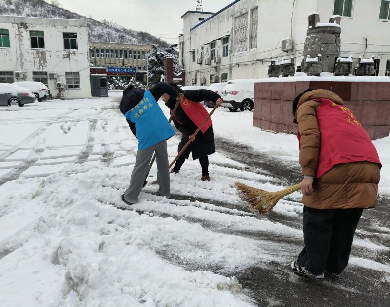 清扫过程中,铁锹、推雪铲、扫帚齐上阵,妇联干部、巾帼志愿者们分工明确、干劲十足,有人负责铲起厚雪,有人专攻刨除暗冰,还有人把积雪堆成“安全岛”,为群众开辟出安全畅通的出行通道。