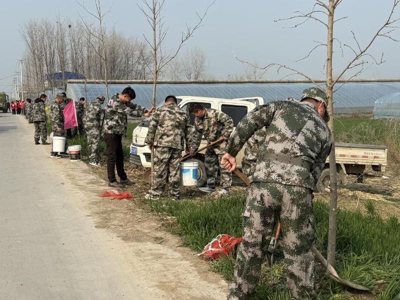 人大代表队率先垂范,民兵代表队身着戎装、挥锹铲土,巾帼志愿队身着红马甲、英姿飒爽,镇政府、教育、保洁、护林员及村干部代表各司其职、分工协作。大家三五人一组,扶苗、培土、踩实、浇水,每一道工序都一丝不苟。经过2个多小时的努力,一株株新栽种的树苗整齐排列、迎风挺立,为初春的乡村道路披上绿色新装。