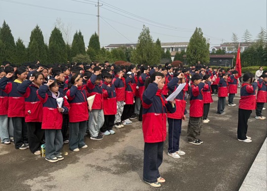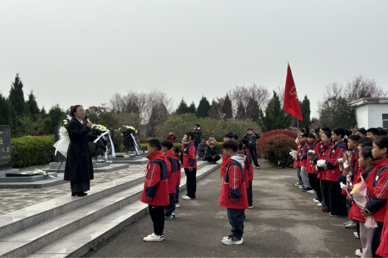 在队旗下,全体学生齐诵《少年中国说》,“少年强则国强”的铿锵誓言在墓地上空久久回荡。全体少先队员举起右拳,庄严宣誓:“好好学习,天天向上!请党放心,强国有我!”这响亮的口号,展现了新时代少年的责任与担当。