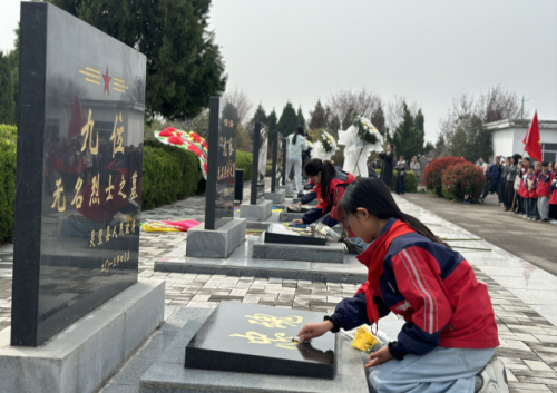 春风送花表哀思,青松滴翠寄深情。在清明节来临之际,为深入弘扬爱国主义精神,继承和发扬革命先烈的优良传统,引导广大少先队员铭记历史、珍惜当下,宿州市灵璧县朝阳镇孟邵小学于3月31日组织3至6年级师生,徒步前往朝阳烈士陵园,开展了以“缅怀先烈志,传承红色魂”为主题的清明祭扫活动。