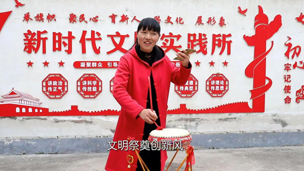 灵璧县非物质文化大鼓传承人刘彩荣,认真查阅资料、细致观察身边群众的人和事,结合本地实际创作了通俗易懂的书词,将厚养薄葬、丧事简办、崇尚节俭、婚事新办、破旧立新、倡树新风、爱护公物、保护环境等乡村文明新风尚,唱响到了村民们的心坎上。