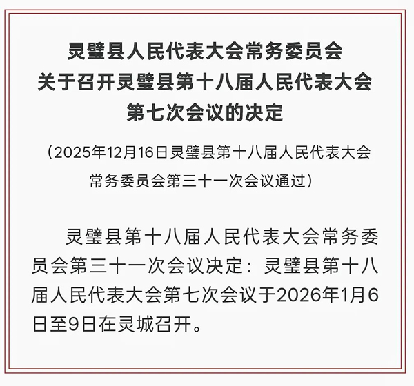 灵璧县人民代表大会常务委员会关于召开灵璧县第十八届人民代表大会第七次会议的决定